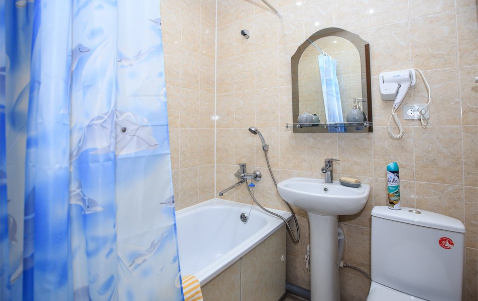 Санузел: ванна, раковина, унитаз, фен