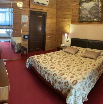 В номере: диван раскладной, кровать двуспальная, прикроватные тумбочки, стол, стулья, шкаф, кондиционер, мини-холодильник, сейф, телевизор ЖК, телефон