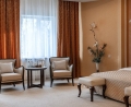 В номере: вешалка, диван раскладной, зеркало, кровать двуспальная, прикроватные тумбочки, стол, стулья, шкаф, кондиционер, мини-холодильник, сейф, телевизор, телефон, чайная станция